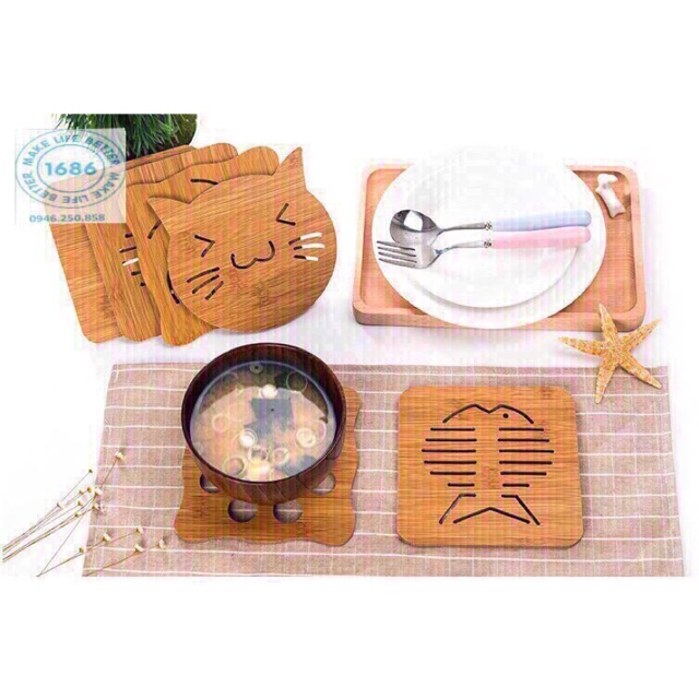 ❤️Đế lót đồ bằng gỗ họa tiết, chịu nhiệt❗️12k