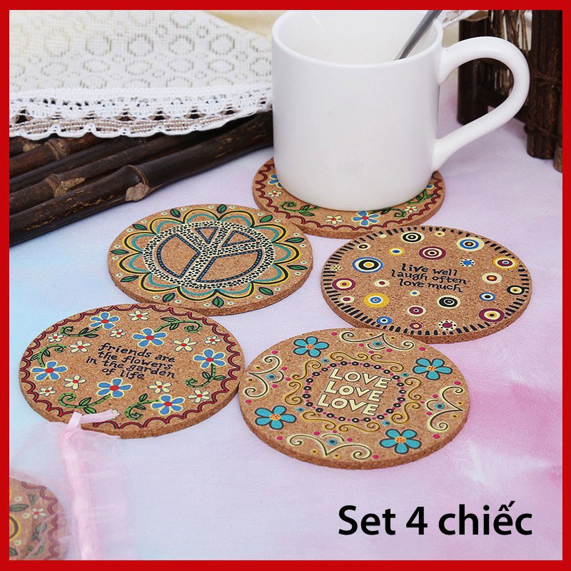 Miếng lót ly chất liệu gỗ hoa văn độc đáo (4 chiếc LÓT LY)