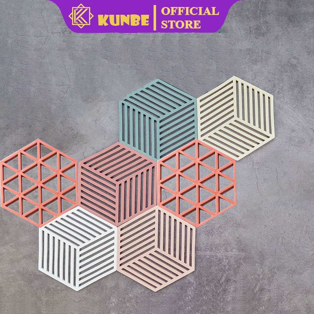 Miếng Lót Ly Cốc KUNBE, Chất Liệu Silicone Chống Trượt, Cách Nhiệt Tốt Hình Lục Giác