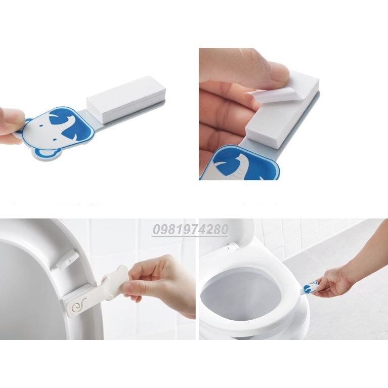 miếng mở nắp bồn cầu giúp bạn bảo vệ sức khỏe cả gia đình, tránh xa những căn bệnh do vi khuẩn gây ra.Được thiết kế nhỏ gọn và kẹp gắn chặt vào nắp bồn cầu.