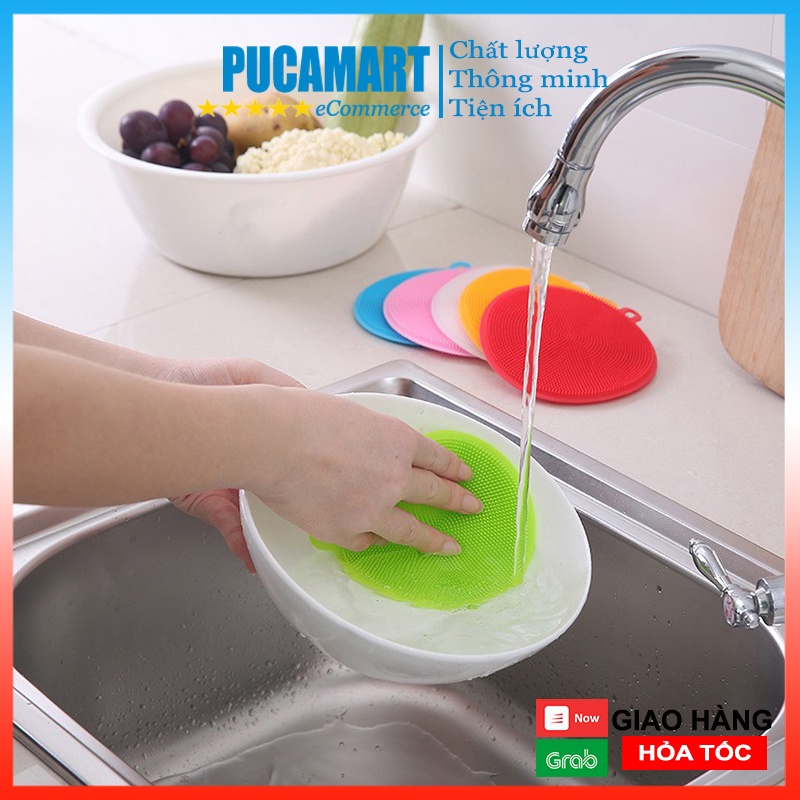 Miếng Rửa Chén Bát PUCA, Miếng Rửa Chất Liệu Silicon, Rửa Xoong Nồi Chảo, Có Móc Treo Nhanh Khô Tiện Lợi
