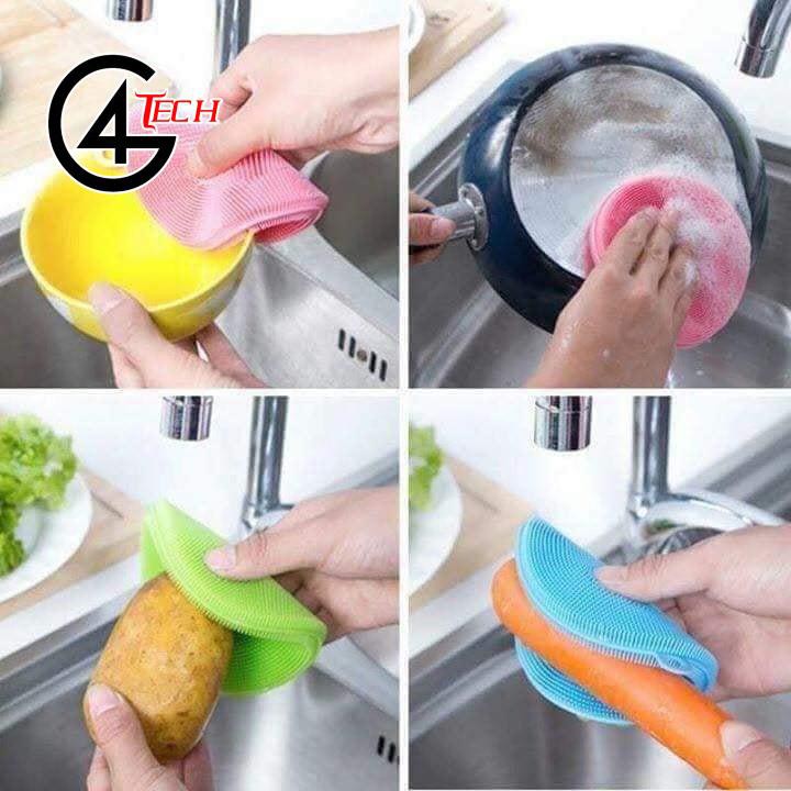 Miếng rửa chén bát silicon đa năngĐược thiết kế bởi các hạt sần trên bề mặt có tác dụng đánh bay các vết bẩn, bám cặn trên xoong nồi mà không ảnh hưởng tới bề mặt chống dính. Với chất liệu Silicone làm cho miếng rửa sạch sẽ hơn sau mỗi lần sử dụng.