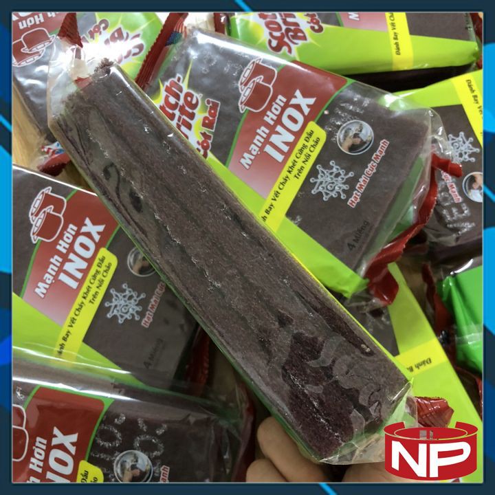 - Chà mạnh mẽ - lớp phủ hạt nổi trên bề mặt miếng rửa chén gúp làm sạch các vết bẩn cứng đầu.