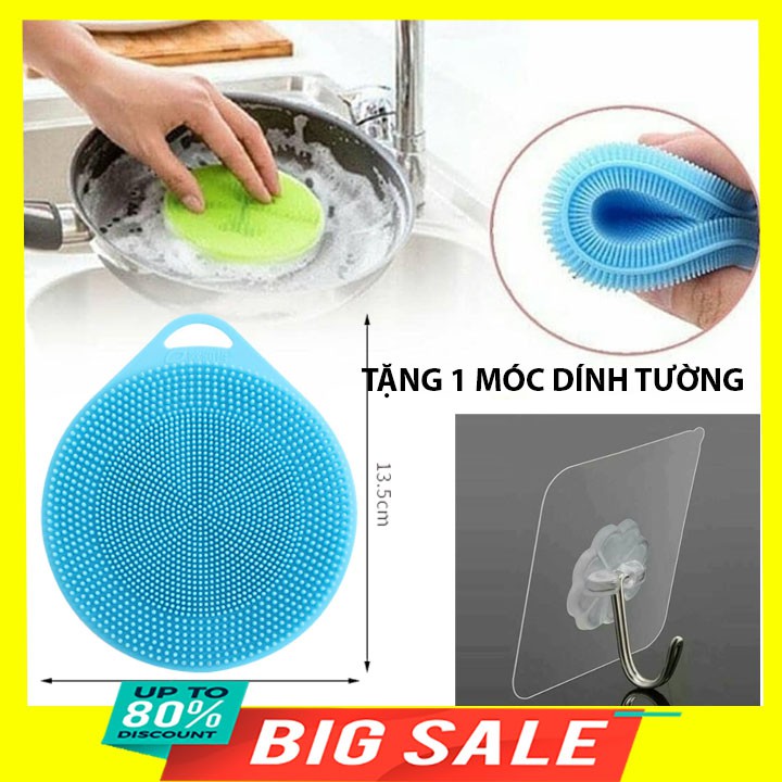 Giới thiệu Miếng rửa nồi bằng silicon tiện dụng đa năng 5x12cm tặng 1 móc dính tường