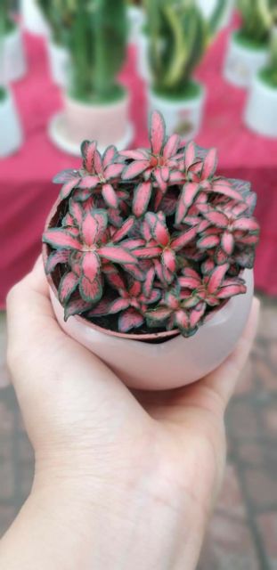 - Sản phẩm gồm 1 chậu nhựa màu đỏ và 2-3 cây cẩm nhung như hình. Đường kính chậu khoảng 7cm
