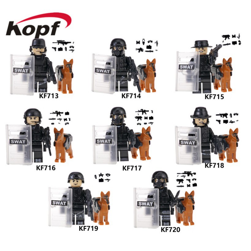 Minifigures Lính Đặc Nhiệm Swat Trang Bị Vũ Khí Tối Tân Kèm Cảnh Khuyển KF6067