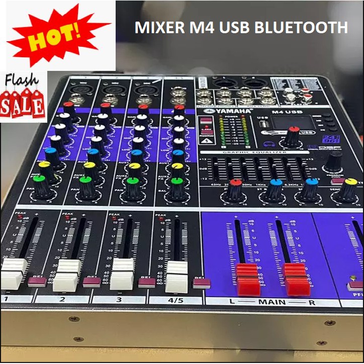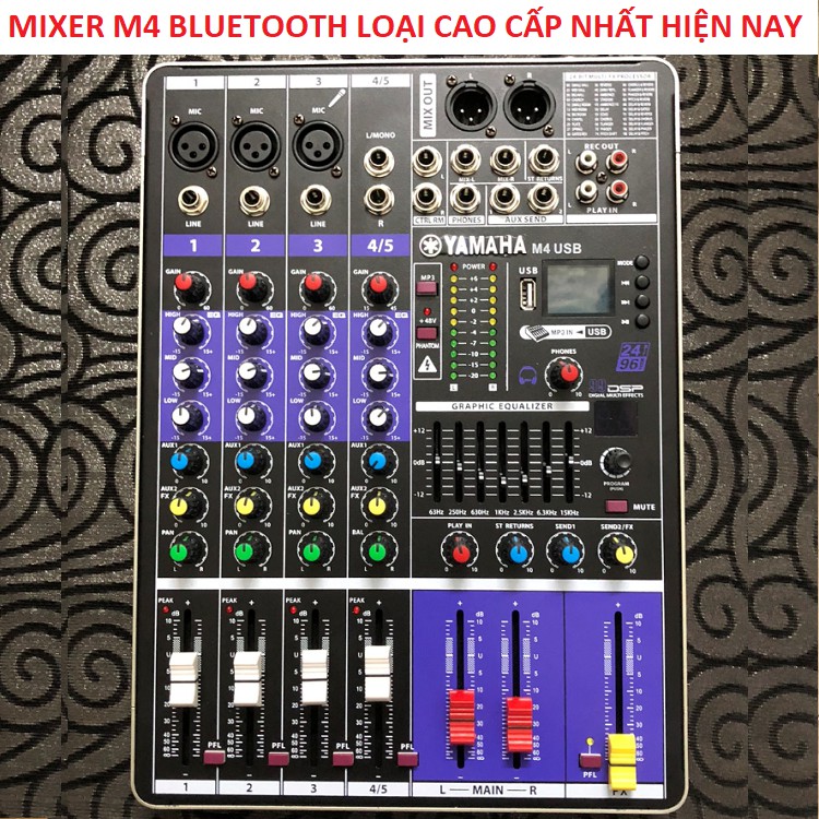 - Mixer M4 Có Bluetooth Thích hợp mọi AMPLY hiện nay : Với khả năng đáp ứng tốt với mọi loại công suất amply đang có trên thị trường, Mixer M4-USB có kết nối usb và bluetooth đang chiếm thị phần lớn tại thị trường Việt Nam , mixer M4-USB tạo tiếng vang tốt, sử dụng nhiều cho karaoke gia đình hát sân khấu hát loa kéo và dàn âm thanh MINI chuyên nghiệp Kết hợp tốt với nhạc cụ, đàn, sáo,…