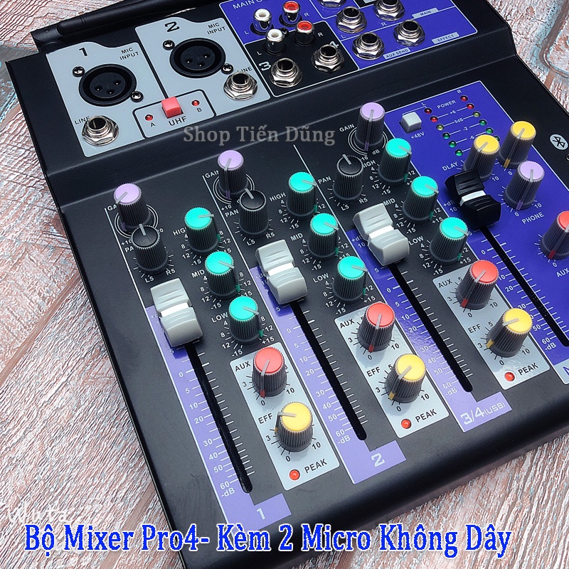 Bộ Mixer Pro4 Bản Nâng Cấp Của Mixer F4 và Mixer G4 Đi Kèm 2 Micro Không Dây, Pro-4 Hỗ Trợ Bluetooth USB Karaoke live