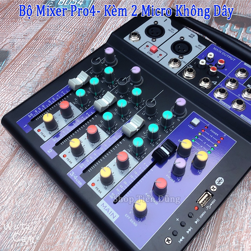 Thiết Bị Âm Thanh > Amply và đầu chỉnh âm || Bộ Mixer Pro4 Bản Nâng Cấp Của Mixer F4 và Mixer G4 Đi Kèm 2 Micro Không Dây, Pro-4 Hỗ Trợ Bluetooth USB Karaoke liveCòn hàng