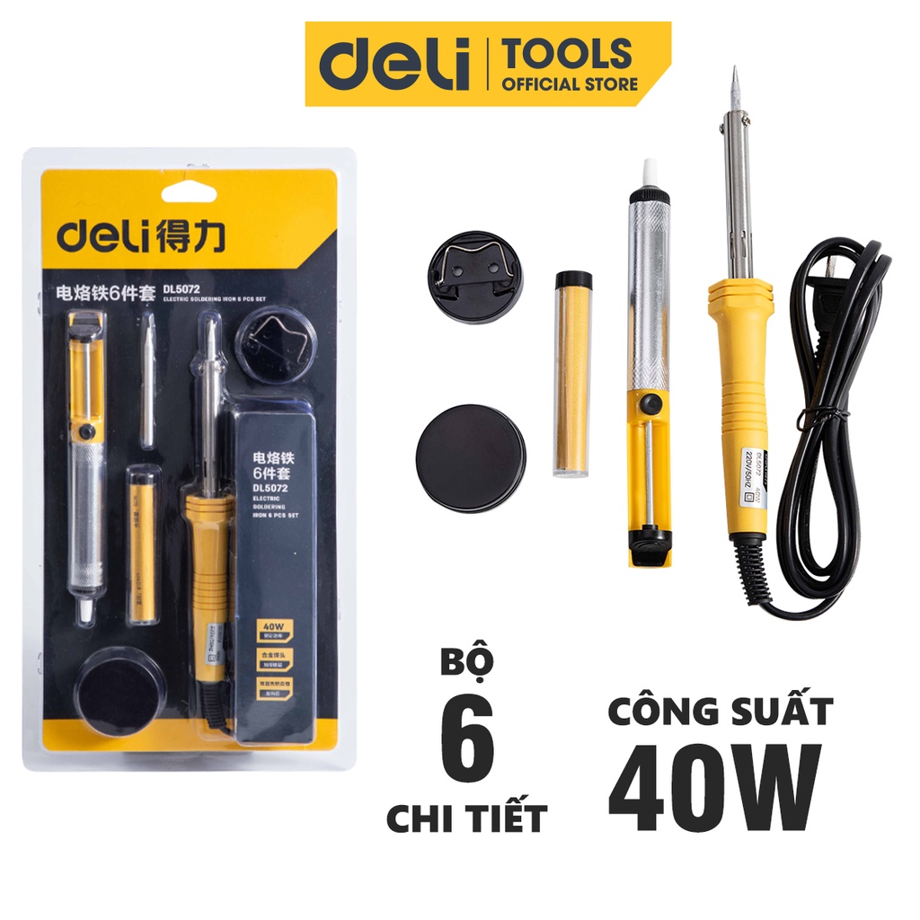 Nhà cửa & Đời sống > Dụng cụ & Thiết bị tiện ích > Dụng cụ > Dụng cụ hàn điện || Bộ Mỏ Hàn Điện Deli 6 Chi Tiết Chính Hãng Chất Lượng Cao - Sử Dụng Đa Năng, Tiện Ích - DL5072Còn hàng