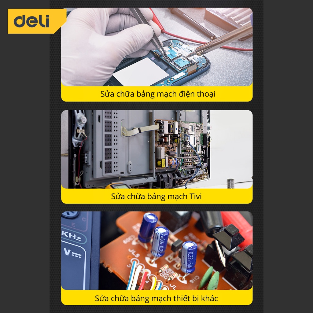 Nhà cửa & Đời sống > Dụng cụ & Thiết bị tiện ích > Dụng cụ > Dụng cụ hàn điện || Bộ Mỏ Hàn Điện Deli 7 Chi Tiết Chính Hãng Chất Lượng Cao 40W Sử Dụng Đa Năng, Tiện Ích - DL393007Còn hàng