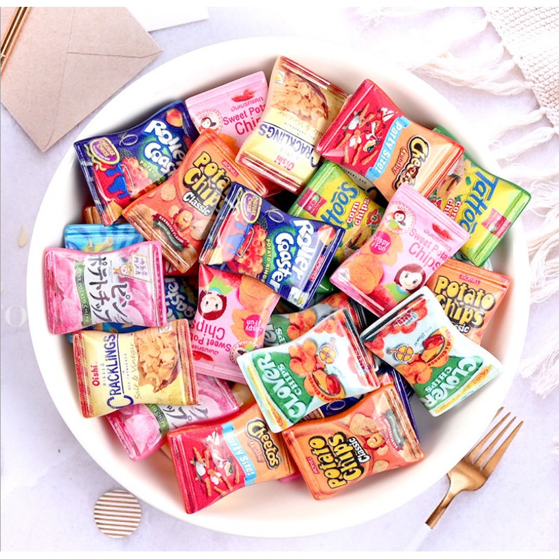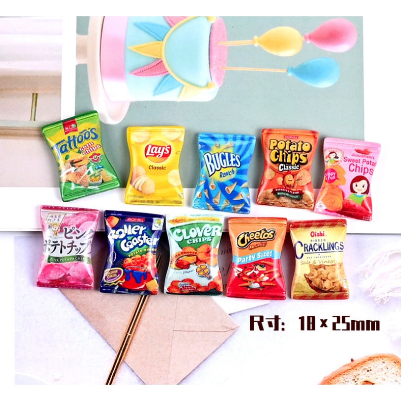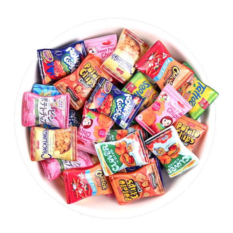 Mô hình bịch bánh snack các loại trang trí nhà búp bêSize ~1*2.5CM