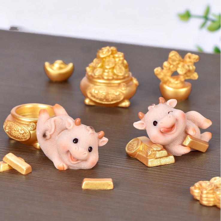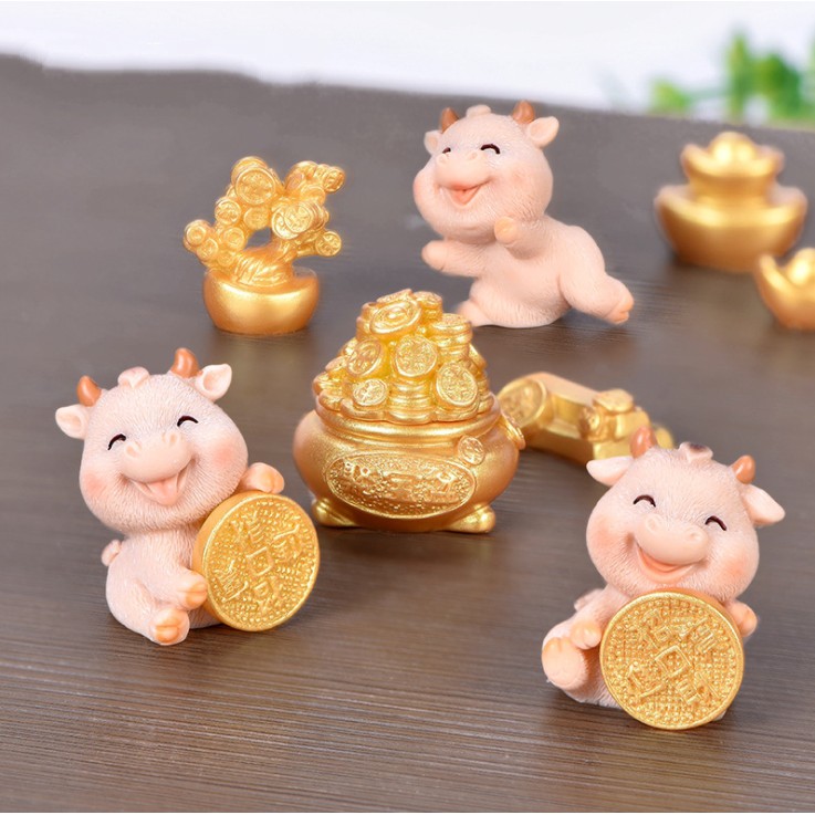 Mô hình Bò tham lam và dễ thương trang trí tiểu cảnh, terrarium, móc khóa, DIY