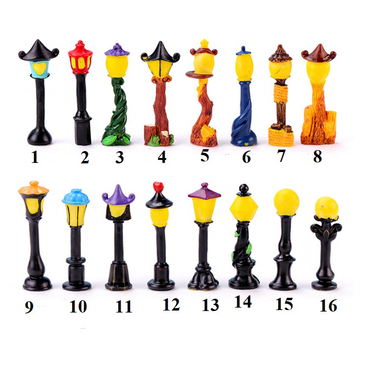 Sản phẩm là các mẫu mô hình (không tích hợp LED chiếu sáng, chỉ để trưng bày) cột đèn sân vườn, công viên theo phong cách #HalloweenChất liệu nhựa ABS, cao 5.6cm x ngang 1.8cm.
