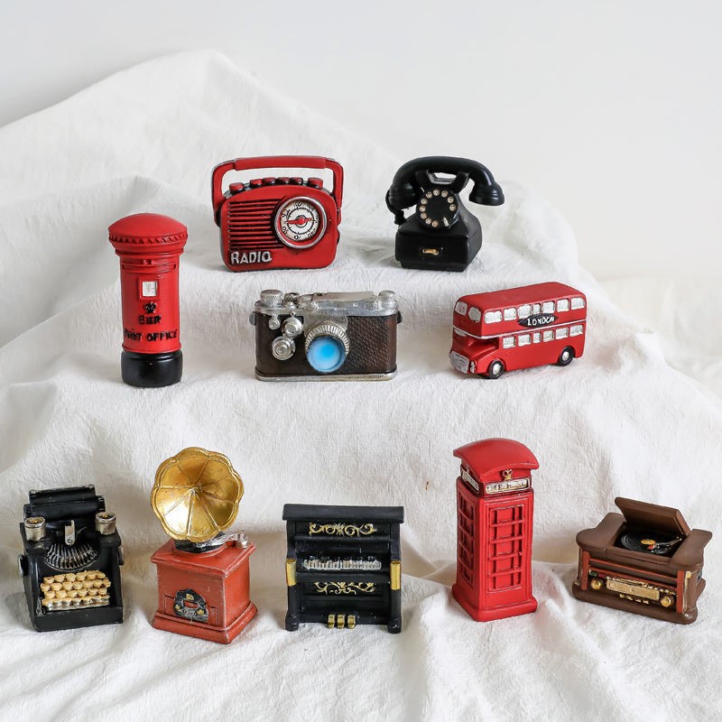 Mô hình máy ảnh mini để bàn nhựa Resin, máy nghe nhạc điện thoại bàn phong cách cổ điển trang trí phòng URI DECOR dành tặng bạn:
