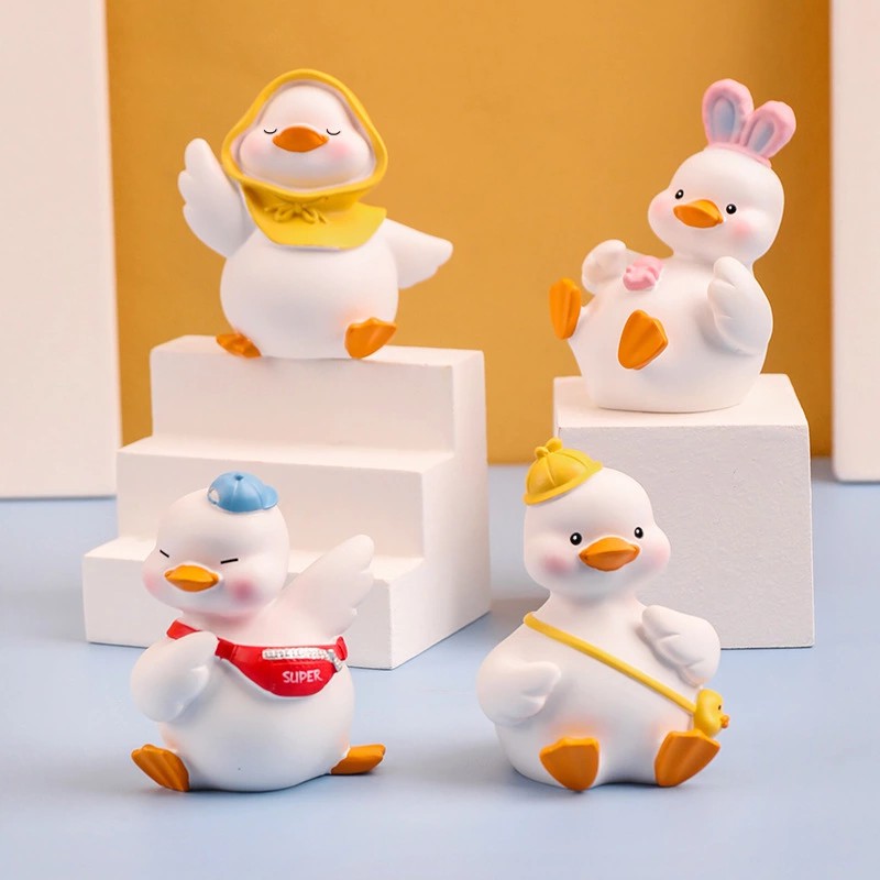 Mô hình vịt tinh nghịch siêu dễ thương, mỗi em cao khoảng 7-8cm nhaChất liệu: đá nhân tạo siêu cứng siêu bền ạ