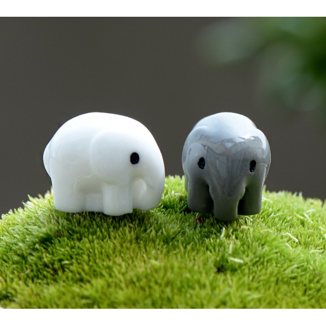 Mô hình voi béo múp xinh xắn màu trắng và xám trang trí tiểu cảnh, DIY