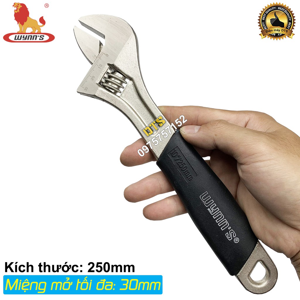 Mỏ lết cán bọc nhựa cứng PVC tăng cường WYNN’S 250mm, cờ lê điều chỉnh độ mở đa năng, thép Cr-V không gỉ xỷ lý nhiệt