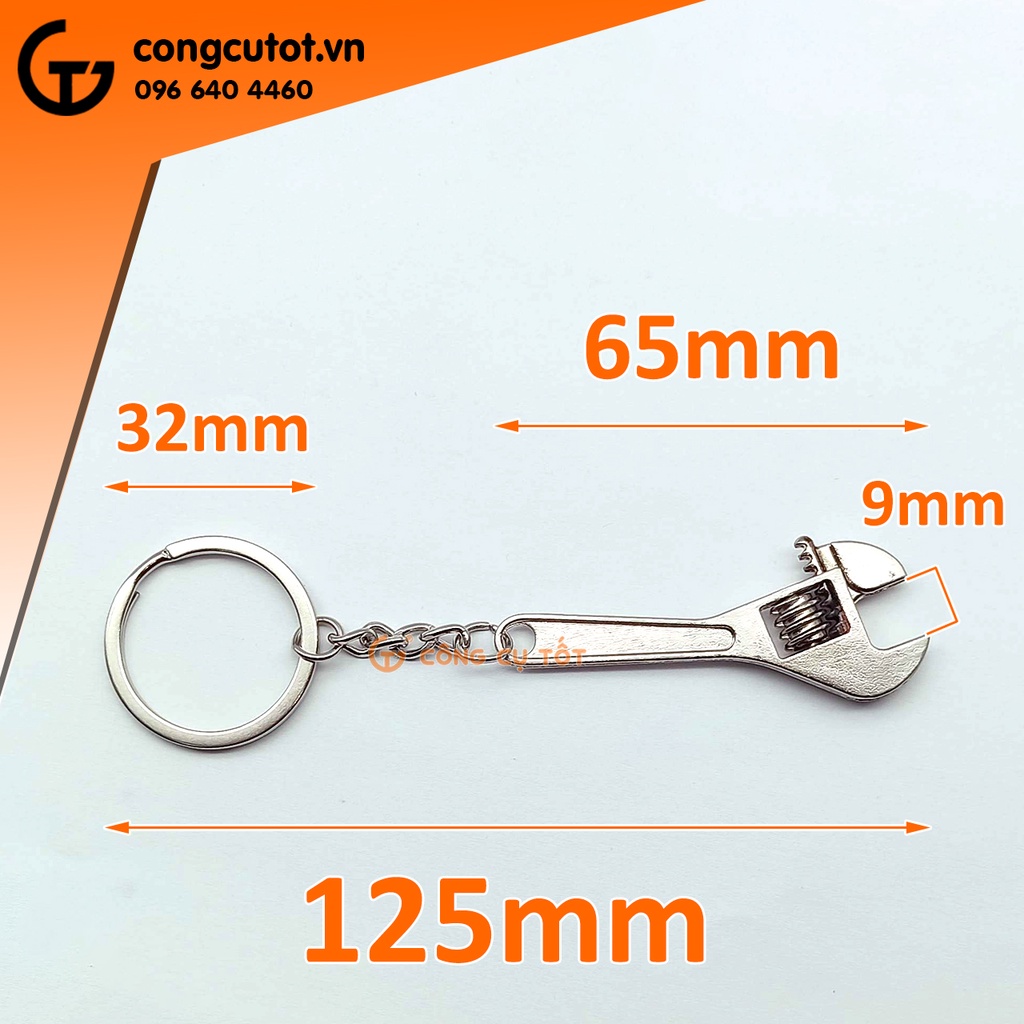 Mỏ lết 65mm là một chiếc móc khóa có hình mỏ lết được làm từ thép mạ crom không gỉ và kèm móc inox.Mỏ lết 65mm.