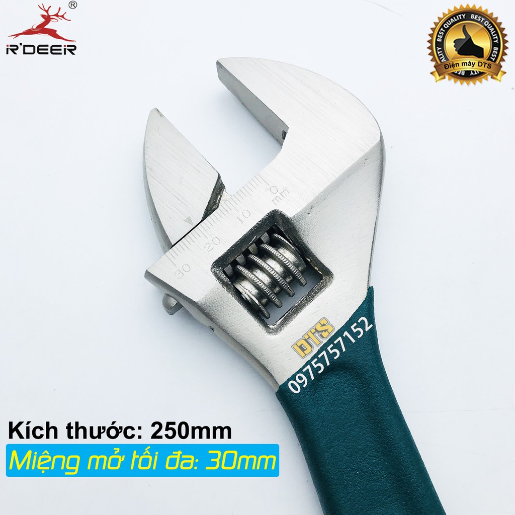 Giới thiệu Mỏ lết tay dạ R'DEER 10 inch/ 250mm chất liệu hợp kim cao cấp, độ bền tuyệt đối, điều chỉnh độ mở linh hoạt 0-30mm