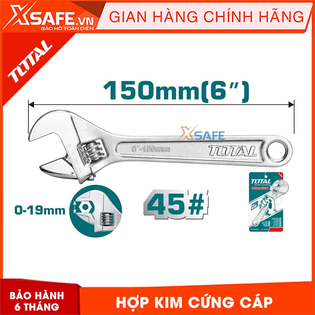 Mỏ lết TOTAL đủ size cờ lê thép Cr-V siêu cứng chống rỉ có thước đo đường kính vặn mở bulong đai ốc sửa chữa cơ khí