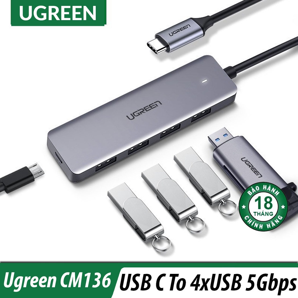 Bộ Mở Rộng USB Type C Ra 4 Cổng USB 3.0 Ugreen CM219, CM136 Chính Hãng