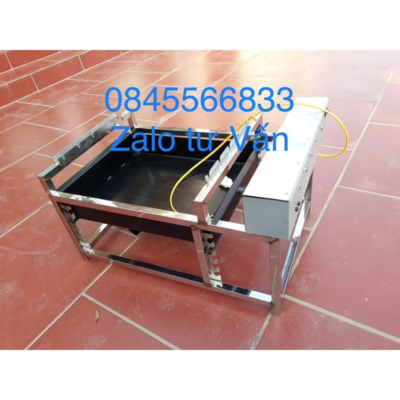 khay than làm bằng tôn dày 3,2 li ( và được Sơn đen chịu nhiệt ) vì làm khay than bằng inox xẽ cong vênh nên bên mình không làm