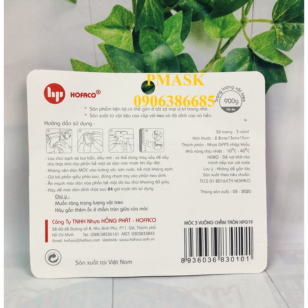 Móc dán tường HOFACO - Móc 3 chấm vuông HPG19 – Móc dán tường đóng đinh chịu lực :❤️ Sản phẩm của Công Ty Nhựa Hồng Phát – HOFACO – Hàng Việt Nam chất lượng cao.