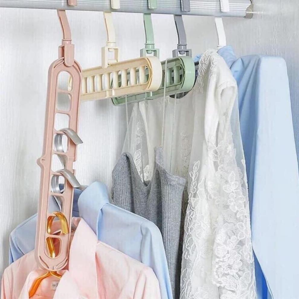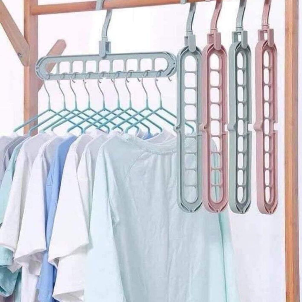 móc áo 9 lỗ thông minh tiết kiệm diện tích giúp chống dồn quần áo nhanh khô ( GIAO MÀU NGẪU NHIÊN)