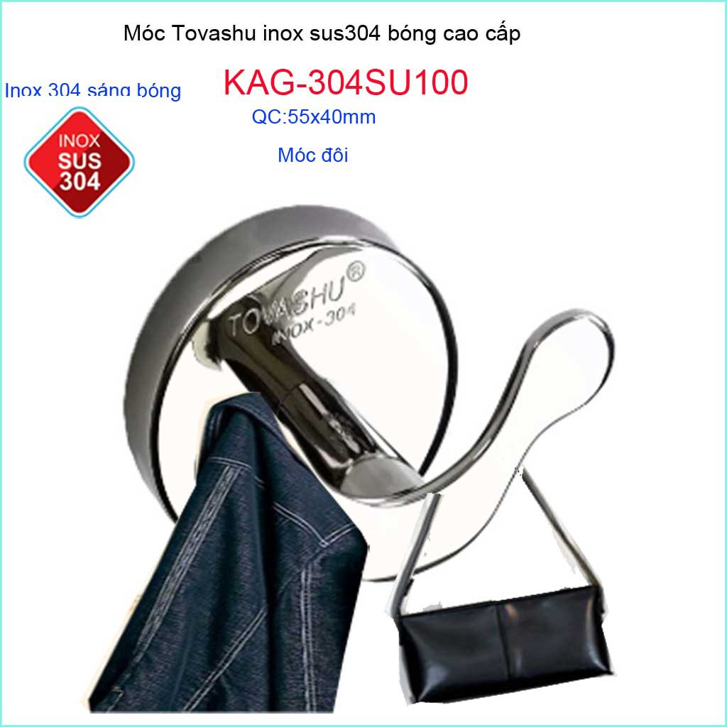Móc áo Tovashu KAG-304SU100, móc đôi Inox SUS304 Nhật Bản sáng bóng cao cấpChất liệu: Móc áo Tovashu, móc đôi inox Tovashu KAG-304SU100 sản xuất bởi chất liệu inox SUS304 cao cấp Nhật Bản, sáng bóng theo thời gian,độ bóng bề mặt cao, hạn chế bám bẩn trở lại