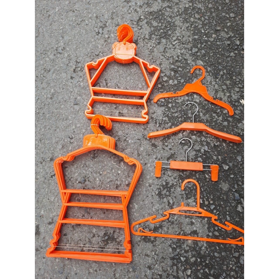 Giới thiệu Móc bộ trẻ em, chất liệu nhựa, đầu móc xoay và đầu móc gắn liền. Size đồ lớn 3-5 tuổi. Combo gồm 10 chiếc