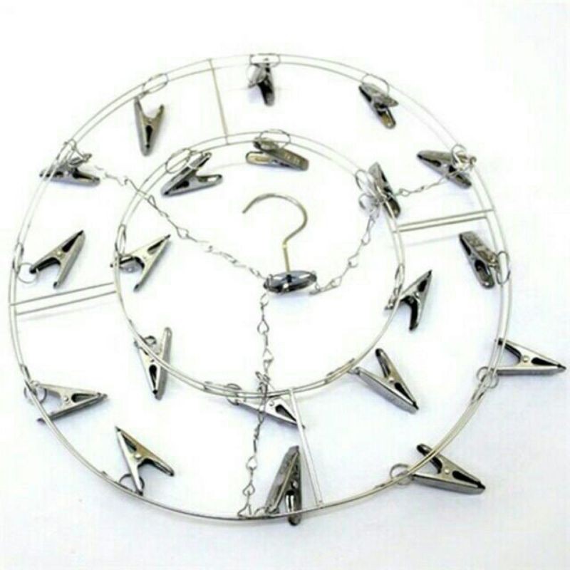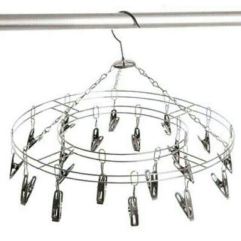 Móc chùm làm bằng inox, bền đẹp. Màu trắng bạc20 kẹp chắc chắn tiện lợi treo đồ nhỏ khi giặt