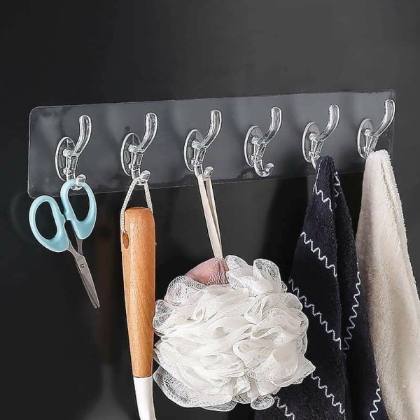 Nhà cửa & Đời sống > Sắp xếp nhà cửa > Móc treo || MÓC DÁN NGUYÊN KHỐI 6 MÓC TRONG SUỐT- Thanh 6 móc treo đồ dán tường siêu dính chịu lực đa năng trong suốtCòn hàng