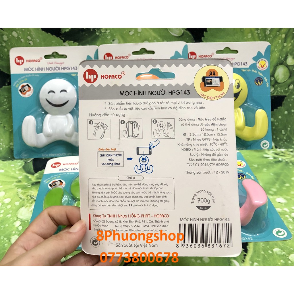 Móc dán tường, Móc treo đồ hình người HPG143, móc treo đồ đa năng❤️ Được sản xuất bởi công ty TNHH Nhựa Hồng Phát
