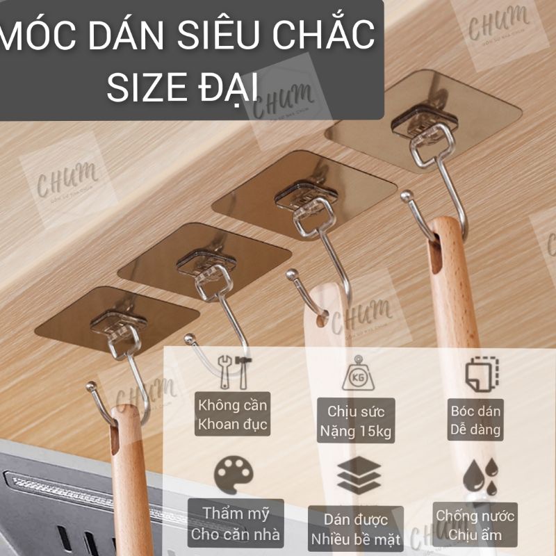 Kích thước móc 6x6 cm. Chịu được sức nặng tầm 10kg.