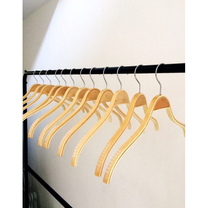 + Móc áo gỗ ép, lên form áo rất đẹp, trên vai có vảy cao su giữ áo ko rớt.
