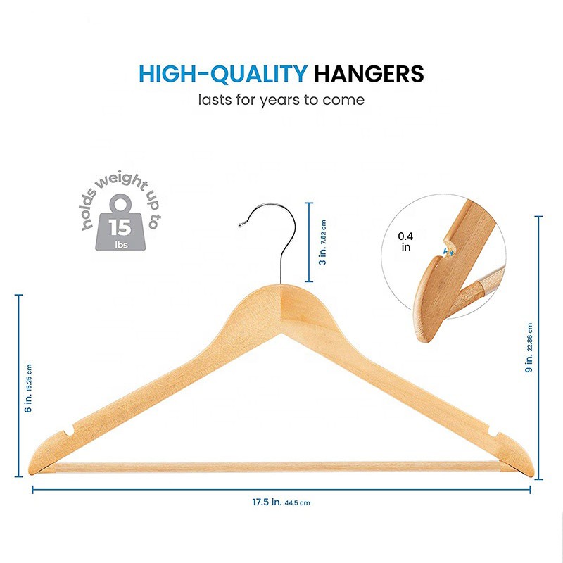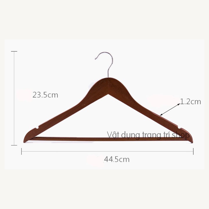 Móc gỗ thanh ngang ( móc gỗ tam giác) treo móc quần áo, được làm từ gỗ tự nhiên 100% được sơn phú bóng 2 lớp, móc sáng bóng ít bị tình trạng nhám hay xước ở phần gỗ. Đầu móc kim loại chắc chắn được xi mạ nên ít gỉ sét có thể đùng trong thời gian dài.Thích hợp cho treo móc quần áo trong gia đình các của hàng thời trang, áo cưới, khách sạn…