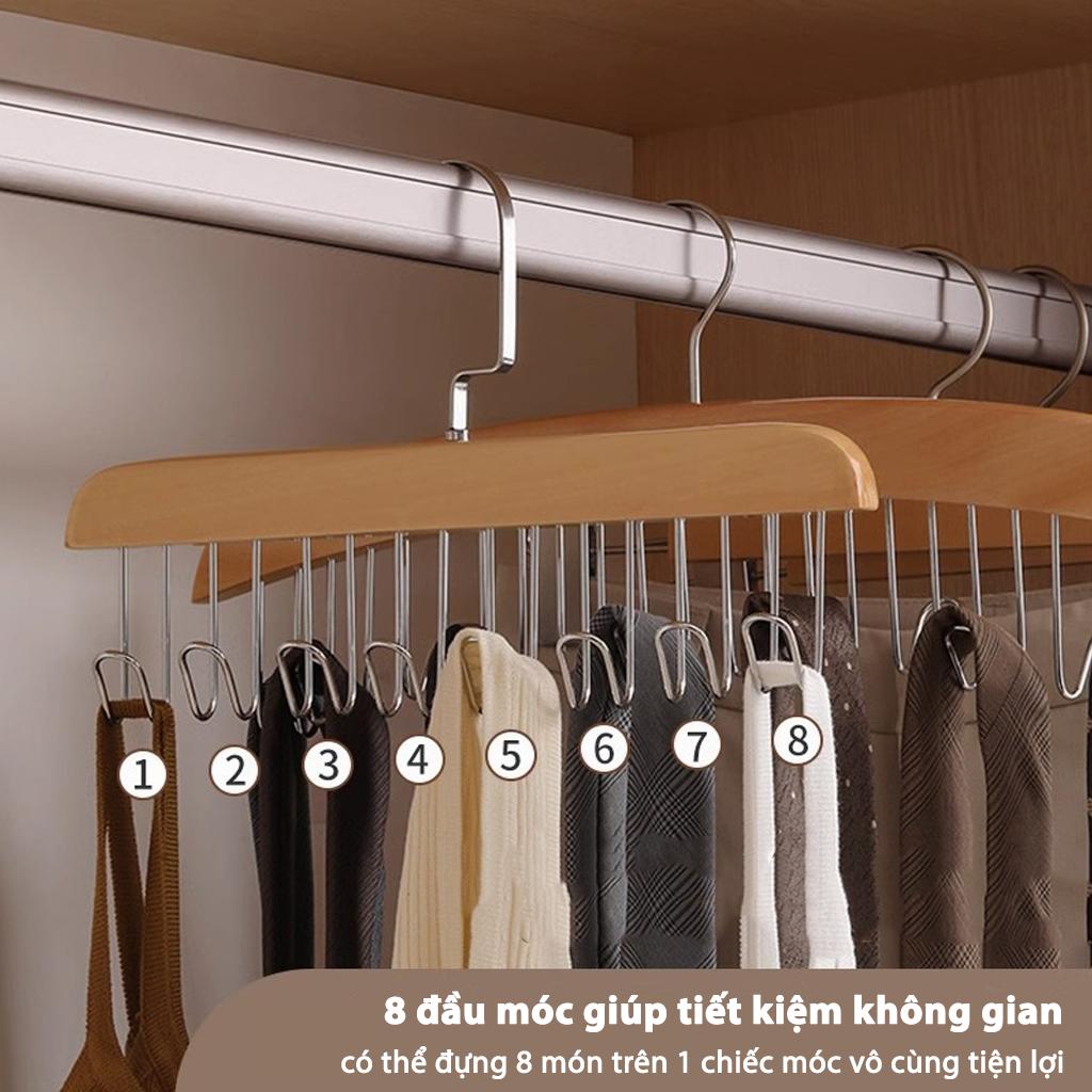 Móc Phơi Bằng Gỗ 8 nhánh Treo Đồ Đa Năng, Móc Treo Áo lót, Túi, Cà Vạt, Thắt Lưng Tiện Dụng
