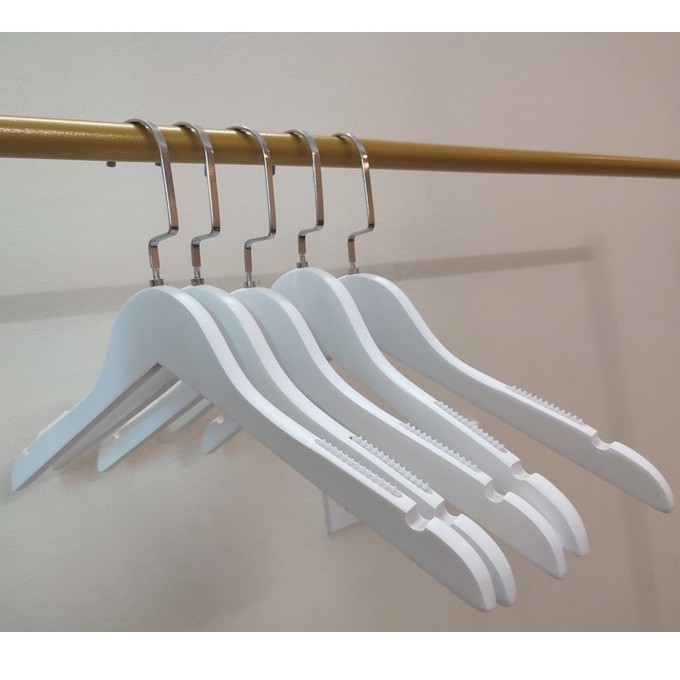 Giới thiệu móc gỗ treo quần áo-móc gỗ màu trắng-móc gỗ cổ tròn-móc có thiết kế rãnh chống trượt ở vai-móc dùng để treo quần-áo-váy,