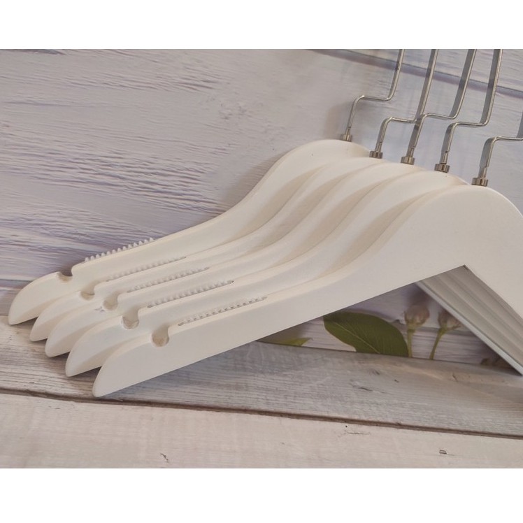 móc gỗ treo quần áo-móc gỗ màu trắng-móc gỗ cổ tròn-móc có thiết kế rãnh chống trượt ở vai-móc dùng để treo quần-áo-váy,
