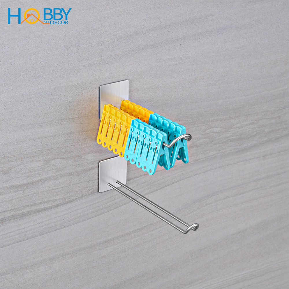 Bộ móc HOBBY GPMD treo kẹp phơi quần áo cho gọn - Inox 304 không rỉ dán tường gạch men nhà bếp, phòng tắm