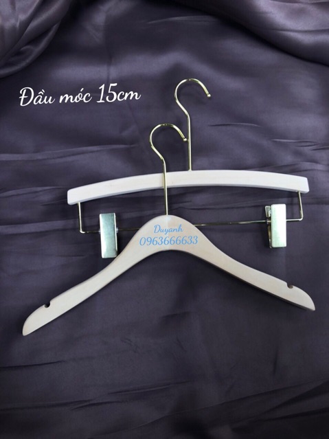 Móc áo : bản 38cm dài , độ dày 2cm , Gỗ mộcKẹp quần : Mộc gỗ, cong, 2 đầu kẹp mạ vàng