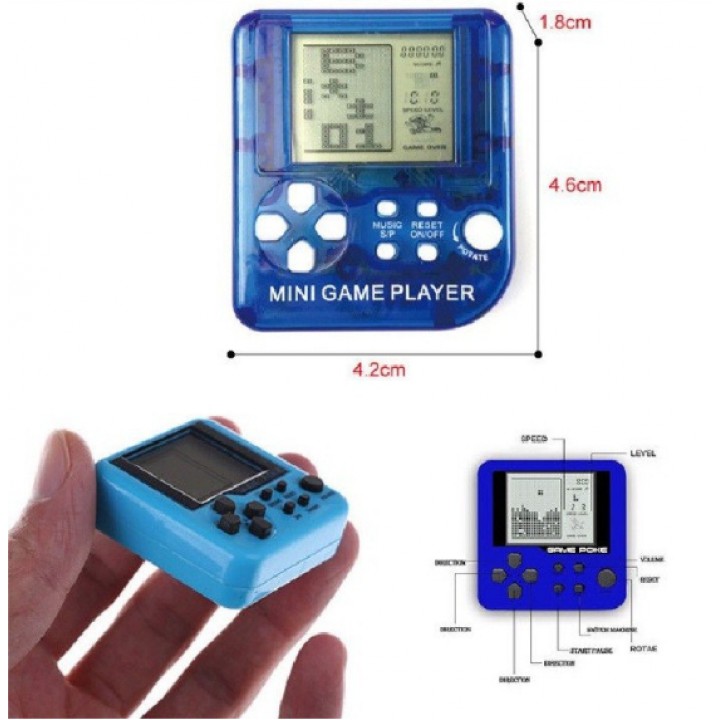 Móc khóa Máy chơi gameMóc khóa Máy chơi game có kích thước nhỏ gọn ấn tượng giúp bạn có thể sử dụng như một chiếc móc khóa, móc cặp và mang theo mọi nơi và chơi mọi lúc. Tuy nhỏ bé nhưng máy chơi game mini này có đủ tất cả các tính năng của một máy chơi game lớn cùng loại.