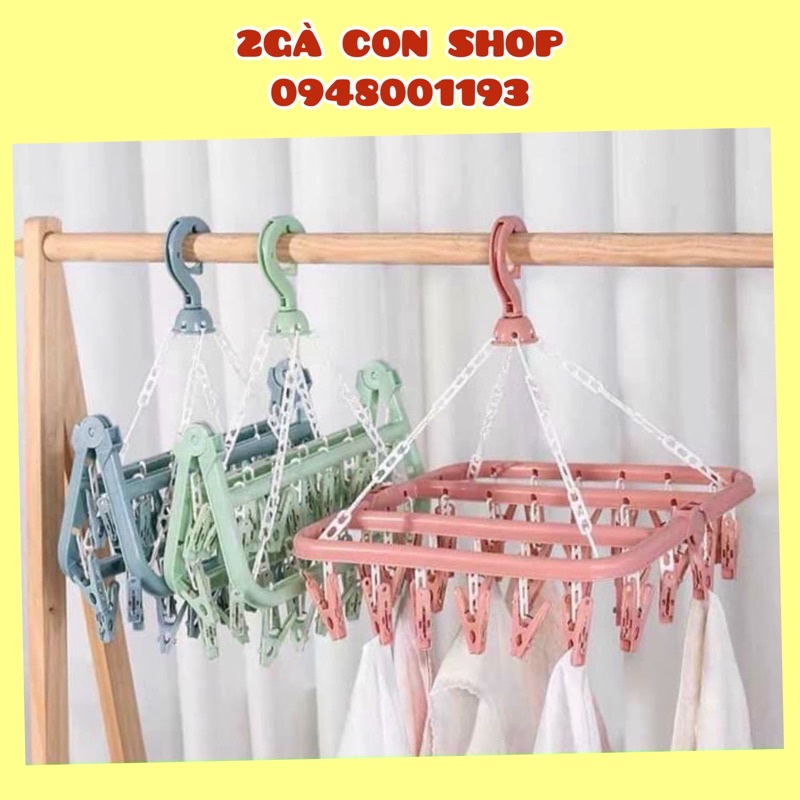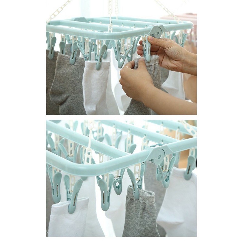 Móc phơi đồ cho bé ,Móc chùm nhựa gấp gọn 32 kẹp size đại