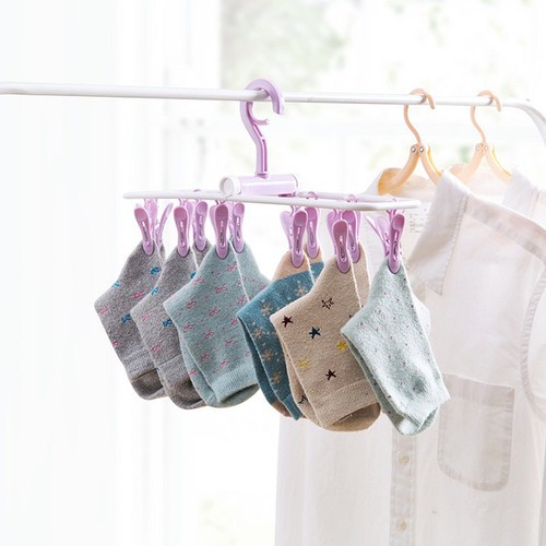 Móc Phơi Đồ Có Kẹp Tiện Ích (Loại 12 Kẹp)❤️Bộ móc nhựa xinh xắn, bạn có thể phơi khăn, phơi tất, khẩu trang, đồ lót.... dễ dàng mà không sợ bị gió thổi bay.