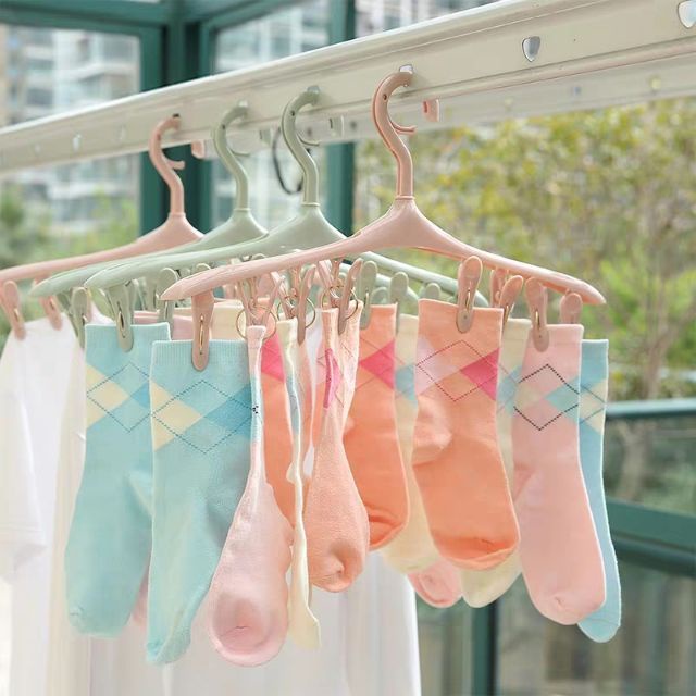 Móc gồm 8 chiếc kẹp nhỏ giúp bạn phơi khăn tay, tất, găng tay, khăn len của bé mà không lo bị rơi giù trời gió to.