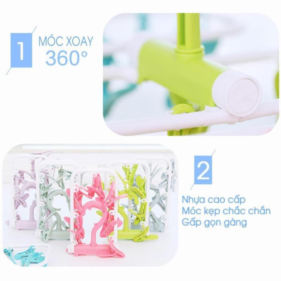 Móc phơi đồ, Móc treo quần áo [FREE SHIP] Móc chùm 12 kẹp, bền đẹp, gấp gọn - Xoay 360 độ