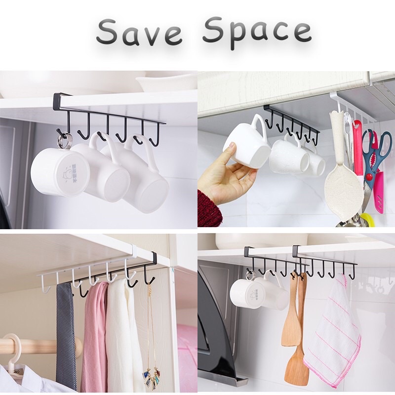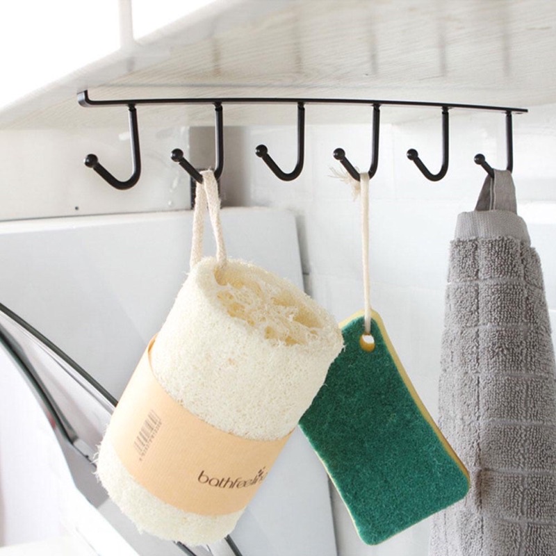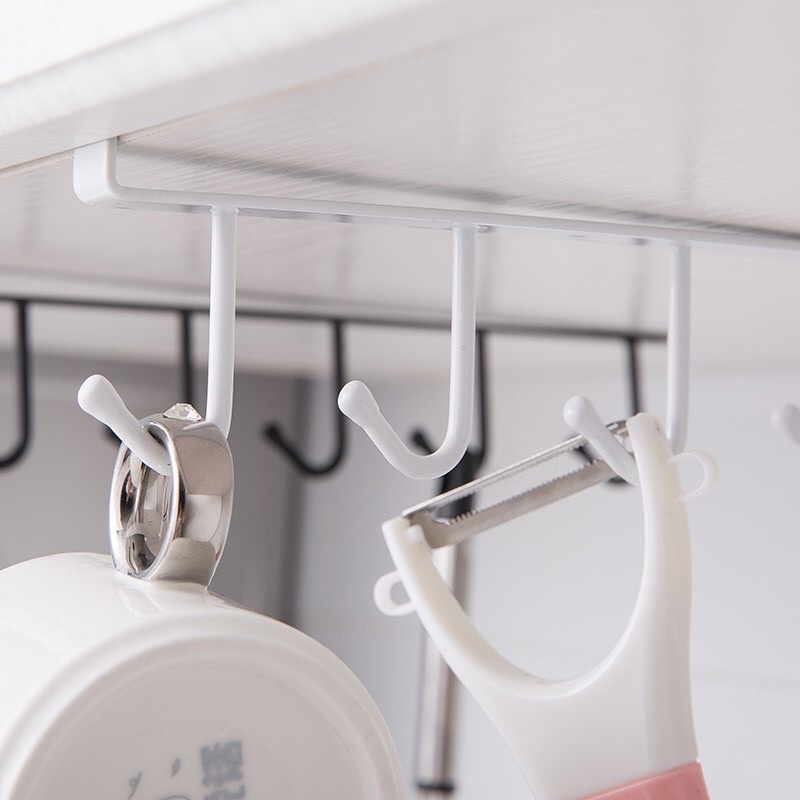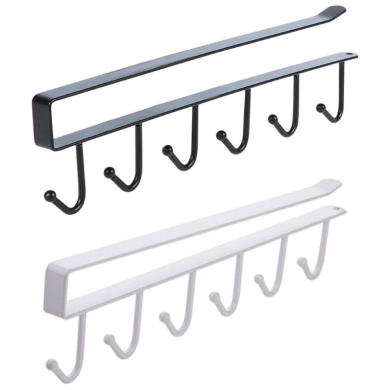 Móc sắt gắn kệ bếp, tủ quần áo, bàn treo đồ , 6 móc, sơn tĩnh điện trắng đenCông dụng: