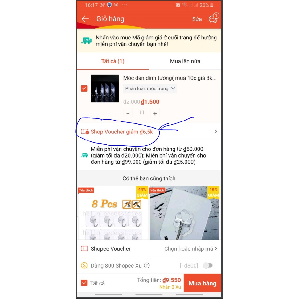 Cụ thể, khi bạn đặt mua 10 sản phẩm móc dính, Nhập mã DIEU8500 sẽ được giảm giá xuống còn 850đ /1 móc dính!