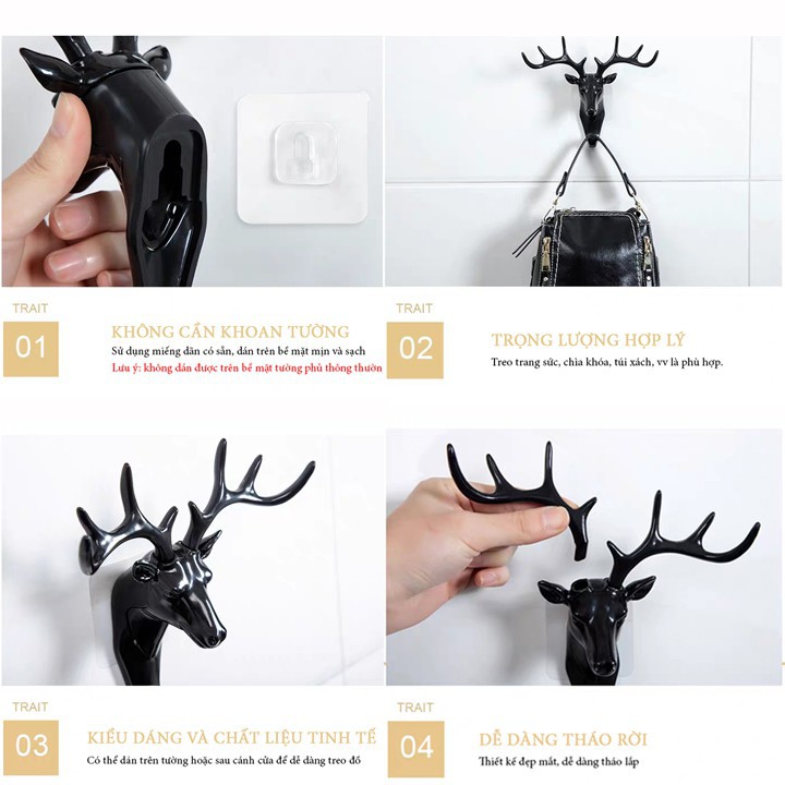 THÔNG TIN SẢN PHẨM:Móc Treo Đồ, Quần Áo Dán Tường Siêu Dính Hình Đầu Hươu Gắn Tường, Sau Cửa Thông Minh